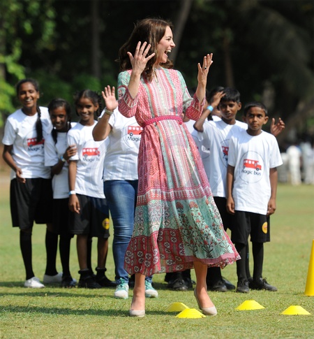 Spontaniczna ksiezna Kate - gra w pilke w sukience i wysokich butach
