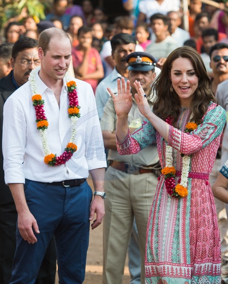 Ksiaze William i Ksiezna Kate w Indiach - tradycyjne powitanie