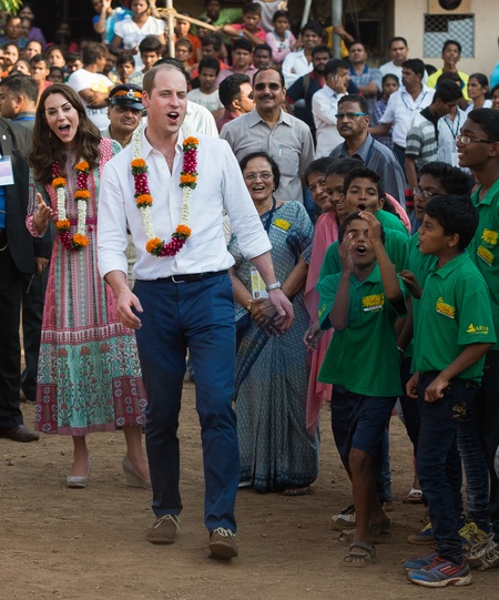 Ksiaze William i Ksiezna Kate w Indiach - tradycyjne powitanie