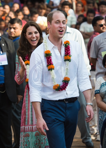 Ksiaze William i Ksiezna Kate w Indiach - tradycyjne powitanie