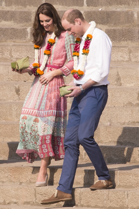 Ksiaze William i Ksiezna Kate w Indiach - tradycyjne powitanie