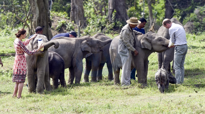 Ksiaze William i ksiezna Kate karmia male nosorozce i slonie - wizyta w Indiach
