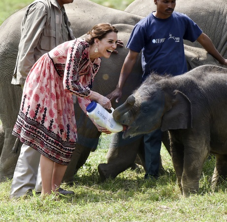 Ksiaze William i ksiezna Kate karmia male nosorozce i slonie - wizyta w Indiach