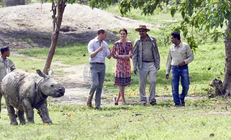 Ksiaze William i ksiezna Kate karmia male nosorozce i slonie - wizyta w Indiach