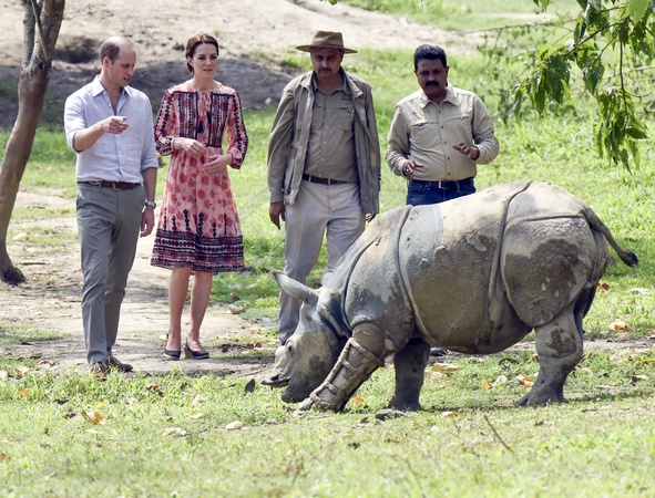 Ksiaze William i ksiezna Kate karmia male nosorozce i slonie - wizyta w Indiach