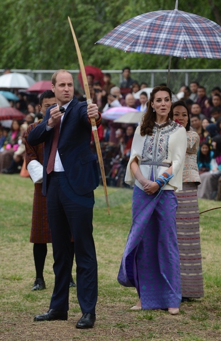 Ksiaze William i ksiezna Kate ucza sie strzelac z luku w Butanie