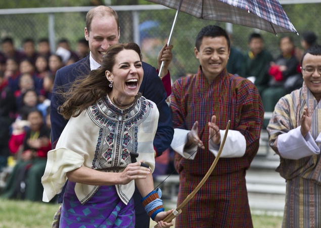 Ksiaze William i ksiezna Kate ucza sie strzelac z luku w Butanie