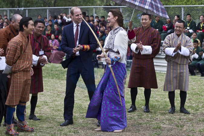 Ksiaze William i ksiezna Kate ucza sie strzelac z luku w Butanie