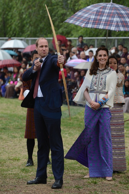 Ksiaze William i ksiezna Kate ucza sie strzelac z luku w Butanie