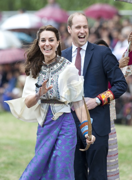 Ksiaze William i ksiezna Kate ucza sie strzelac z luku w Butanie