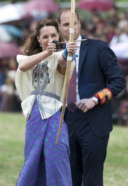Ksiaze William i ksiezna Kate ucza sie strzelac z luku w Butanie