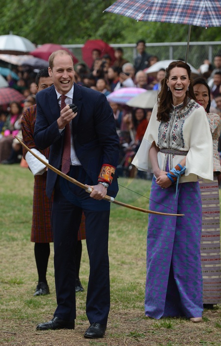 Ksiaze William i ksiezna Kate ucza sie strzelac z luku w Butanie
