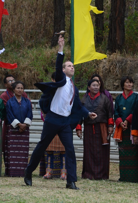 Ksiaze William i ksiezna Kate ucza sie strzelac z luku w Butanie