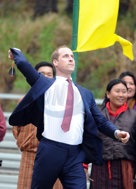Ksiaze William i ksiezna Kate ucza sie strzelac z luku w Butanie