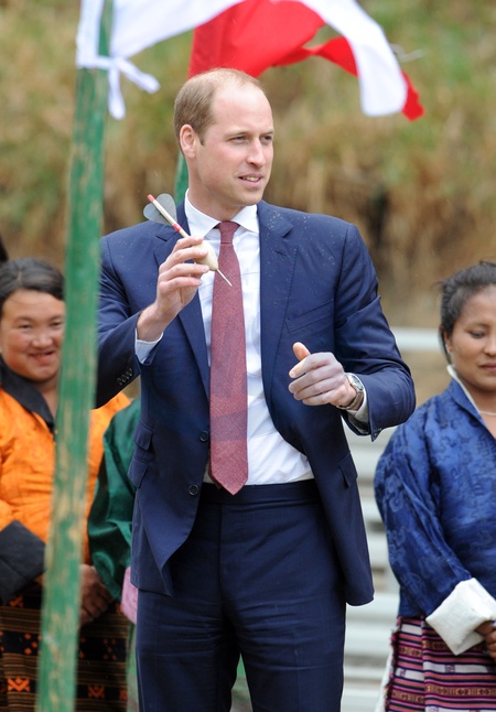 Ksiaze William i ksiezna Kate ucza sie strzelac z luku w Butanie