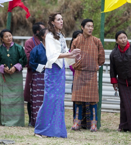 Ksiaze William i ksiezna Kate ucza sie strzelac z luku w Butanie
