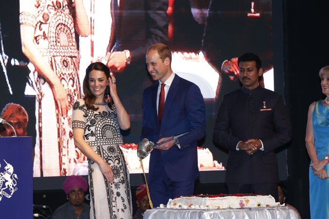 Ksiezna Kate i ksiaze William kroja tort mieczem, wizyta w Indiach