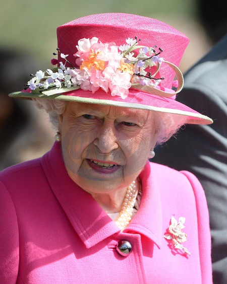 Krolowa Elzbieta II w wiosennym kapeluszu z kwiatami