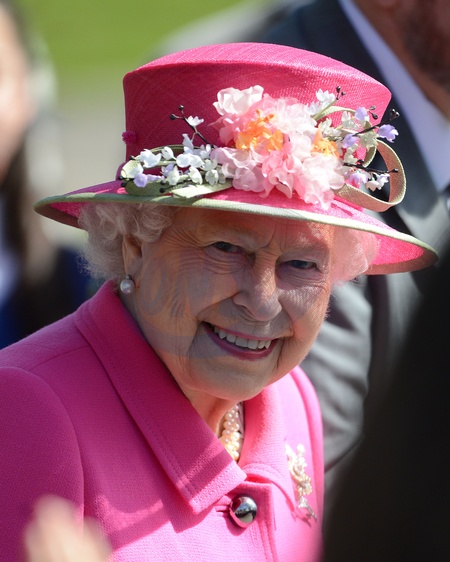 Krolowa Elzbieta II w wiosennym kapeluszu z kwiatami