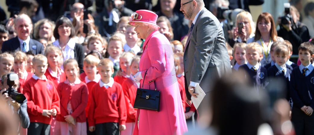 Krolowa Elzbieta II w wiosennym kapeluszu z kwiatami