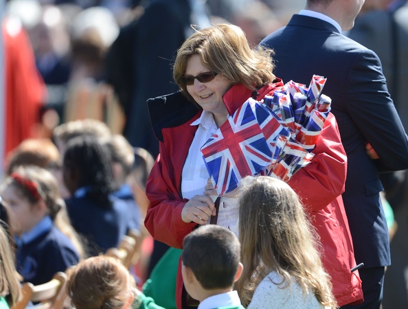 Krolowa Elzbieta II w wiosennym kapeluszu z kwiatami