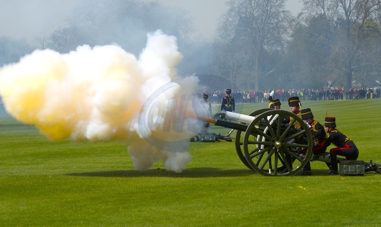 Urodziny krolowej Elzbiety II- wystrzały armat - salwy honorowe na czesc krolowej