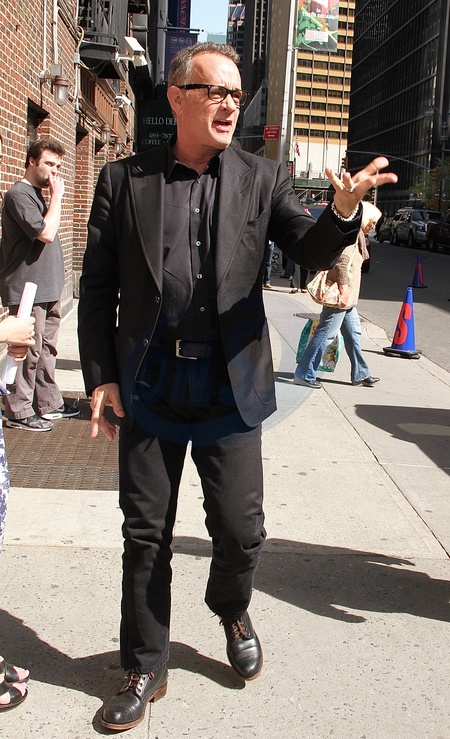 Tom Hanks gestykuluje w drodze do The Late Show