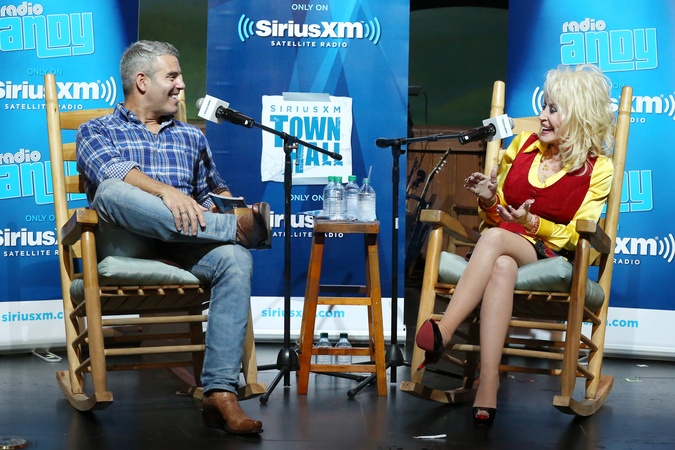 Andy Cohen i Dolly Parton podczas Sirius XM Town Hall