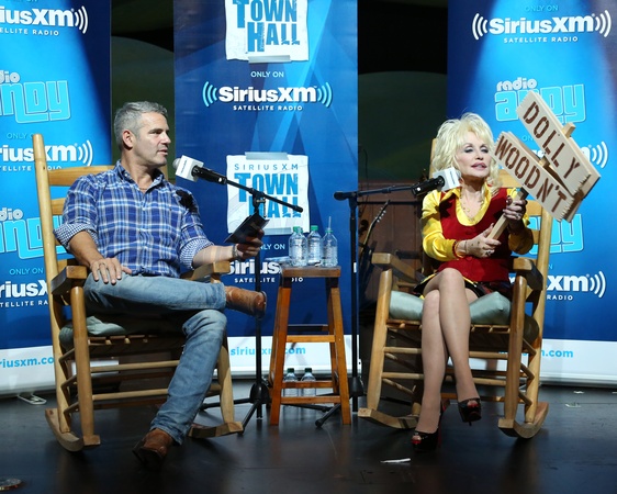 Andy Cohen i Dolly Parton podczas Sirius XM Town Hall