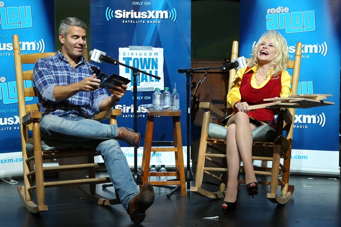 Andy Cohen i Dolly Parton podczas Sirius XM Town Hall
