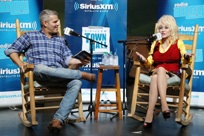 Andy Cohen i Dolly Parton podczas Sirius XM Town Hall