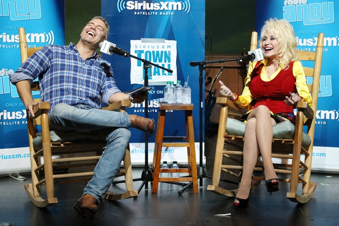 Andy Cohen i Dolly Parton podczas Sirius XM Town Hall