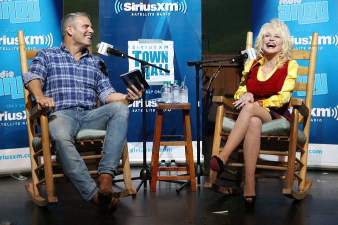 Andy Cohen i Dolly Parton podczas Sirius XM Town Hall