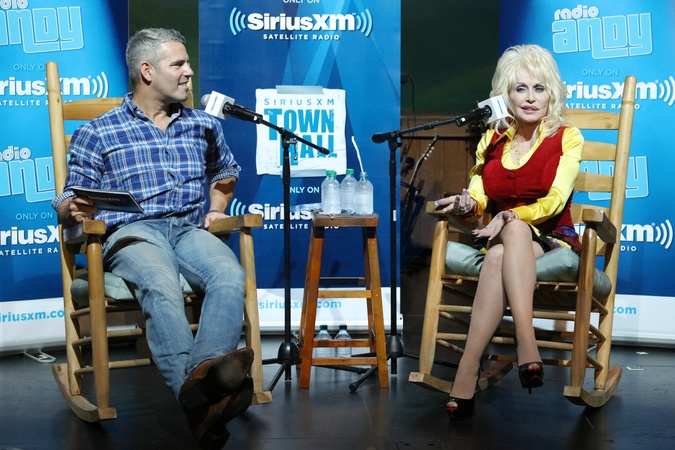 Andy Cohen i Dolly Parton podczas Sirius XM Town Hall