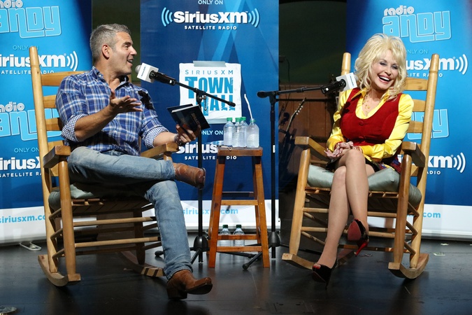 Andy Cohen i Dolly Parton podczas Sirius XM Town Hall