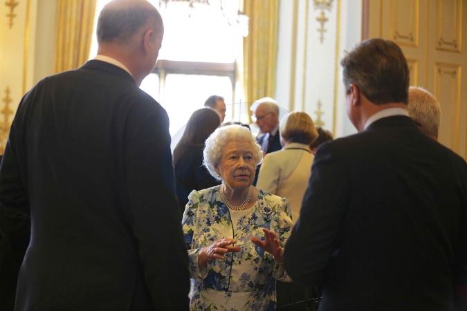 Krolowa Elzbieta II i David Cameron na przyjeciu w palacu
