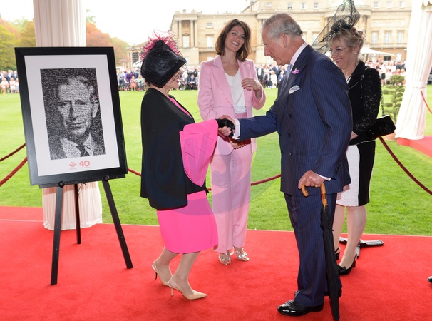 Ksiaze Karol na ogrodowym party w Palacu Buckhingam