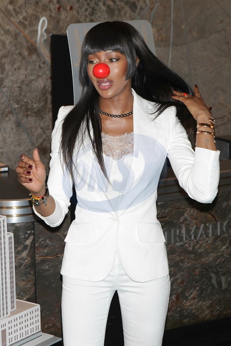 Naomi Campbell w bialym garniturze i adidasach, Empire State Building