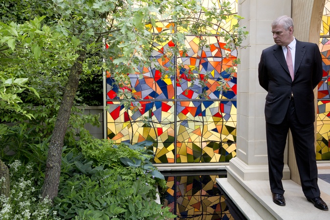 Ksiaze Andrzej z corkami Beatrice i Eugenie podczas Chelsea Flower Show