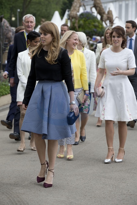 Ksiaze Andrzej z corkami Beatrice i Eugenie podczas Chelsea Flower Show