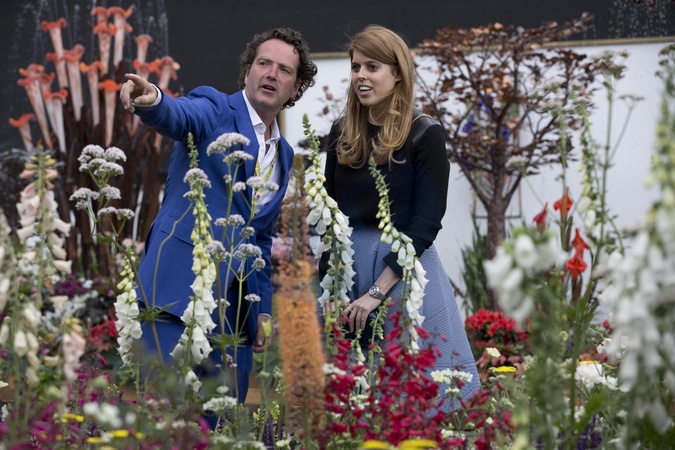 Ksiaze Andrzej z corkami Beatrice i Eugenie podczas Chelsea Flower Show