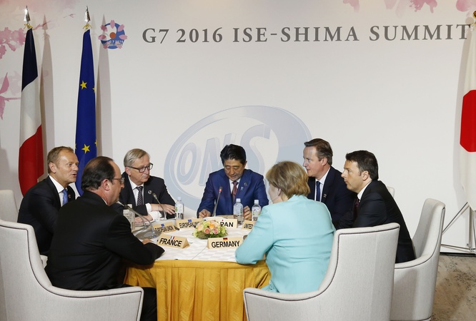 Shinzo Abe, Francois Hollande, David Cameron, Justin Trudeau, Jean-Claude Juncker, Donald Tusk, Matteo Renzi, Angela Merkel, Barack Obama