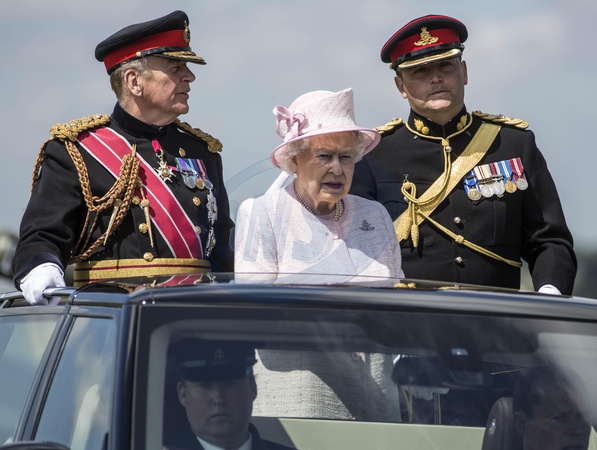 Krolowa Elzbieta podczas przegladu Krolewskiej Artylerii w obozie Larkhill