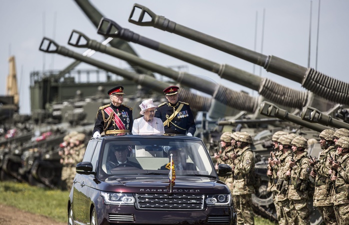 Krolowa Elzbieta podczas przegladu Krolewskiej Artylerii w obozie Larkhill