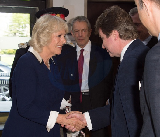 Ksiezna Camilla w granatowej sukience z bialym kolnierzykiem