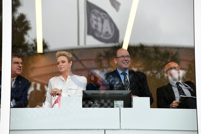 Ksiaze Albert II z zona Charlene na Grand Prix Monaco