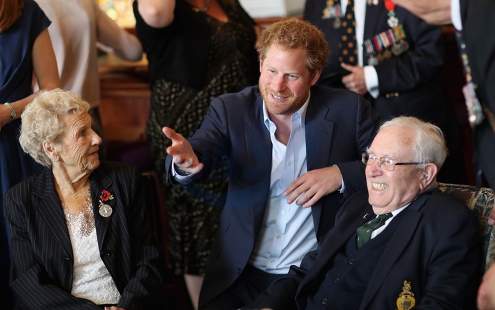 Ksiaze Harry podczas spotkania z weteranami z Normandii