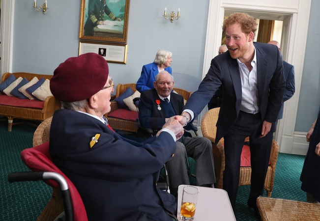 Ksiaze Harry podczas spotkania z weteranami z Normandii