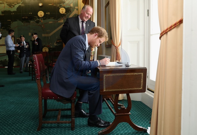 Ksiaze Harry podczas spotkania z weteranami z Normandii