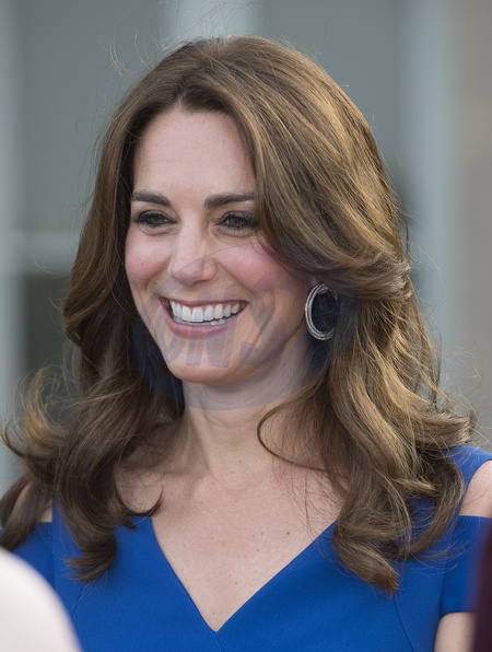 Piekna Ksiezna Kate w niebieskiej sukni podczas SportsAid's 40th anniversary dinner